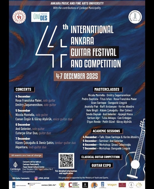 O Euterpe Guitar Duo representará Portugal na 4.ª edição do Festival Internacional de Guitarra de Ancara, que se realizará entre 4 e 7 de dezembro de 2025. A programação do evento integra concertos, palestras, masterclasses e um concurso internacional.