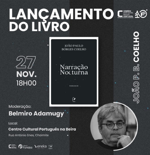 O Camões - Centro Cultural Português na Beira irá receber o lançamento da obra Narração Nocturna, de João Paulo Borges Coelho, no dia 27 de novembro de 2025, às 18h00. O livro será apresentado pelo jornalista Belmiro Adamugy.