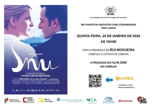 No dia 29 de janeiro de 2026, às 18h00, será exibido o filme “SNU”, da realizadora Patrícia Sequeira, na sala de cinema Cinélux, em Genebra, no âmbito do projeto “CINE-COMUNIDADE”, iniciativa promovida pelo Consulado-Geral de Portugal em Genebra, com o apoio do Camões, I.P.