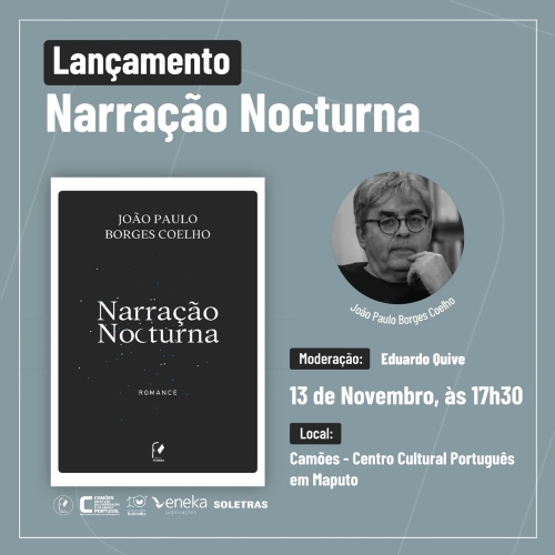 No dia 13 de novembro de 2025, a partir das 17h30, o Camões – Centro Cultural Português em Maputo será o palco do lançamento do livro “Narração Nocturna”, de João Paulo Borges Coelho.