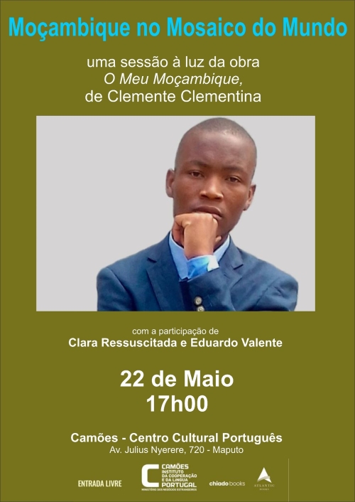 O Camões - Centro Cultural Português em Maputo, no dia 22 de maio de 2025, pelas 17h00, apresenta uma sessão de subordinada ao tema “Moçambique no Mosaico do Mundo” à luz da obra literária "O Meu Moçambique, de Clemente Clementina".