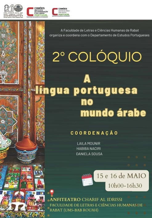 Por ocasião da comemoração do Dia Mundial da Língua Portuguesa, nos dias 15 e 16 de maio de 2025, a Faculdade de Letras e Ciências Humanas da Universidade Mohammed V, em Rabat, e o Departamento de Estudos Portugueses, organizam e coordenam o 2.º colóquio “A língua portuguesa no mundo árabe”.