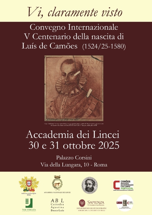 Por ocasião dos 500 anos do nascimento de Luís de Camões, realiza-se nos dias 30 e 31 de outubro de 2025, em Roma, o colóquio internacional “Vi, Claramente Visto”, na Accademia Nazionale dei Lincei.