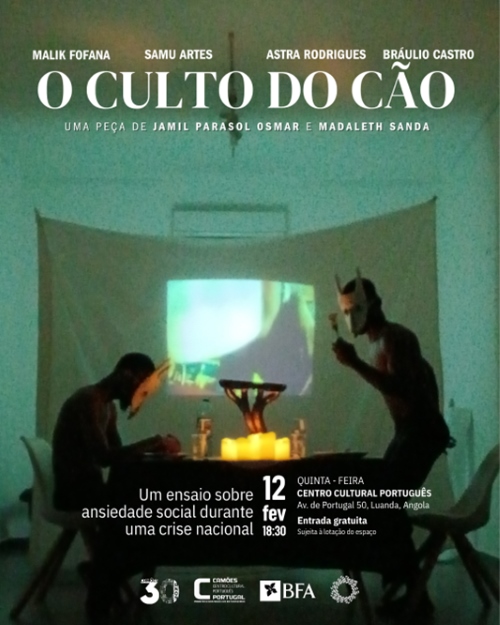 No dia 12 de fevereiro de 2026, às 18h30, será apresentado no Camões - Centro Cultural Português em Luanda o espetáculo "O Culto do Cão", de Madalena Sanda e Jamil Parasol Osmar, um ensaio cénico sobre a ansiedade social em contexto de crise nacional.