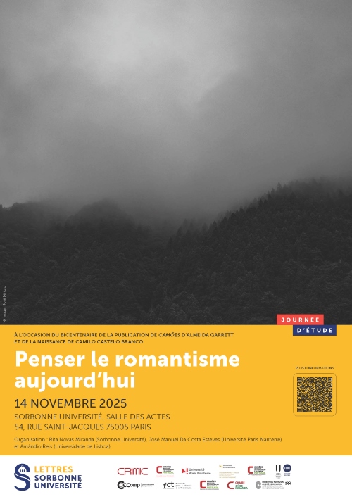 No dia 14 de novembro de 2025, entre as 9h00 e as 17h30, decorrerá a jornada de estudos “Pensar o Romantismo hoje. Nos 200 anos da publicação de «Camões», de Almeida Garrett, e do nascimento de Camilo Castelo Branco”, na salle des Actes da Sorbonne Université, em Paris.