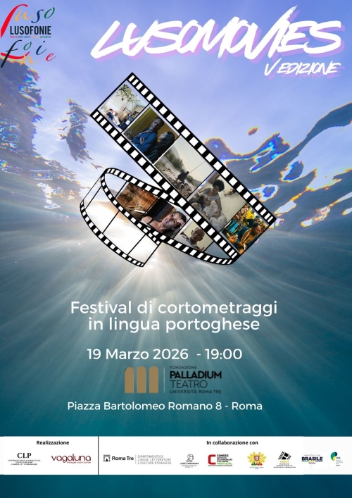 No dia 19 de março de 2026, à s 19h00, terá lugar a 5.ª edição do Lusomovies - festival de curtas‑metragens em lÃngua portuguesa, no Teatro Palladium de Roma.