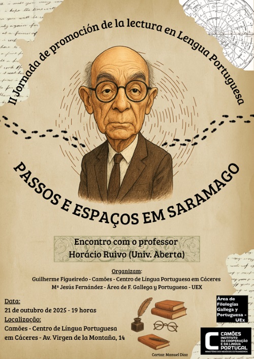 No dia 21 de outubro de 2025, às 19h00, terá lugar no Camões - Centro de Língua Portuguesa (CLP) em Cáceres, uma jornada dedicada a José Saramago, organizada pela Área de Filologias Galega e Portuguesa da Universidade da Extremadura e pelo CLP em Cáceres.