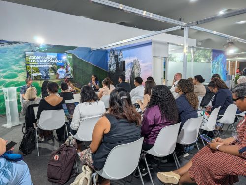 O evento decorreu no Pavilhão Moana Blue Pacific, tendo contado com a presença da Enviada Especial para o Clima das Ilhas Marshall, Tina Stege, que abriu os trabalhos em nome da AOSIS. Seguiu-se a apresentação dos principais resultados da análise preliminar das NDCs 3.0 submetidas pelos SIDS até à data por Sameera Savarala, especialista do Programa Climate Promise do PNUD, tendo concluído que 90% das NDC incluem uma referência explícita a Perdas e Danos (75% incluem um capítulo ou subsecção dedicada), sendo que em 90% dos casos incluem informação financeira relacionadas esta matéria.