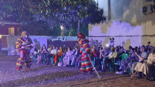 O momento alto da noite foi a performance conjunta dos Caretos e do Kankuran, num espetáculo vibrante de ritmo, cor e energia, que entusiasmou o público e transformou o Espaço Camões num verdadeiro palco de celebração intercultural.