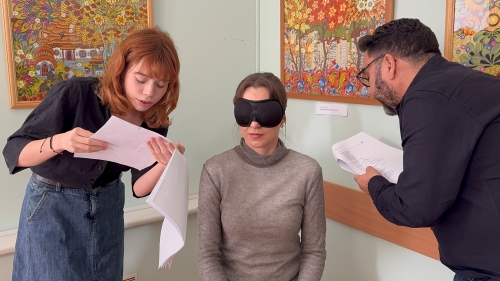 A apresentação deste projeto assumiu um formato invulgar e imersivo: cada participante percorreu individualmente um trajeto de experiências sensoriais, de cerca de 15 minutos, construído a partir de leituras em português e ucraniano.