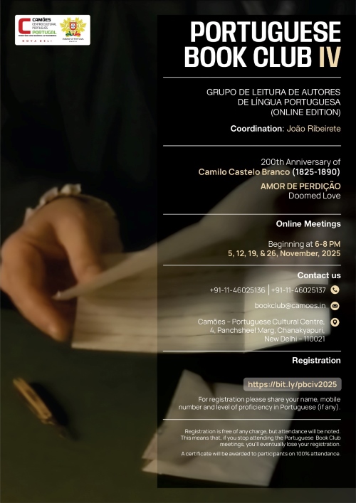 Como parte das comemorações, na Índia, do bicentenário do nascimento do escritor português Camilo Castelo Branco (1825-1890), o Camões - Centro Cultural Português em Nova Deli dedica o IV Grupo de Leitura de Autores de Língua Portuguesa à leitura integral do clássico “Amor de Perdição”.