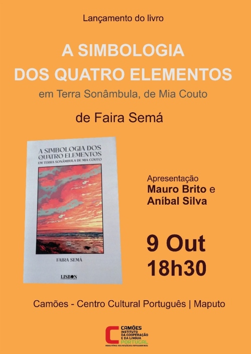 No dia 9 de outubro de 2025, às 18h30, o Camões - Centro Cultural Português em Maputo será palco do lançamento do livro “A Simbologia dos Quatro Elementos- em Terra Sonâmbula de Mia Couto”, de Faira Semá.