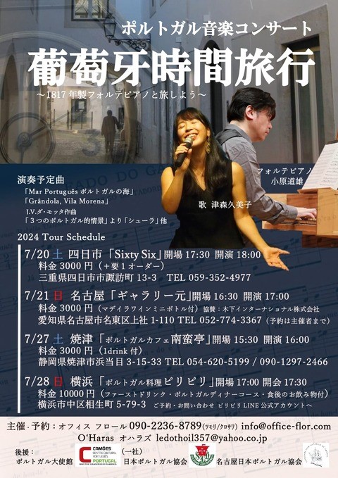 Os concertos apresentam música tradicional portuguesa, pela voz de Kumiko Tsumori, acompanhada ao pianoforte por Michio O’Hara, interpretando temas como “Grândola, Vila Morena” ou peças de José Vianna da Motta.