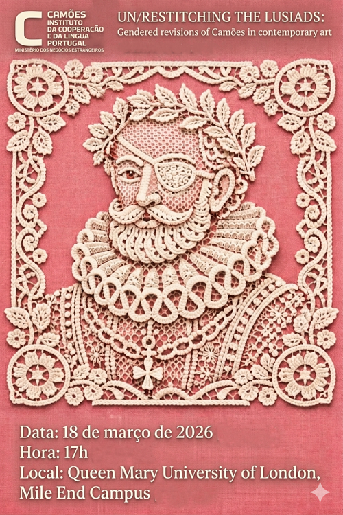 A palestra Un/Restitching 'The Lusiads': Gendered revisions of Camões in contemporary art terá lugar no dia 18 de março de 2026, às 17h30, no campus de Mile End da Queen Mary University of London.