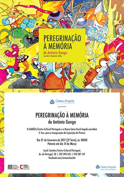 Será inaugurada no dia 21 de fevereiro de 2017, às 18h30, no Camões – Centro Cultural Português em Luanda, a exposição individual de pintura “Peregrinação À Memória” do artista plástico António Gonga, numa parceria com o Banco Caixa Geral Angola. A exposição ficará patente ao público até dia 14 de março.