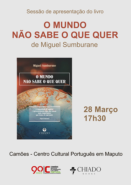 No dia 28 de março, às 17h30, será apresentado, no Camões - Centro Cultural Português em Maputo, o livro O Mundo Não Sabe o Que Quer, do autor Miguel Sumburane, com a chancela da Chiado Books. A sessão de lançamento contará com a apresentação do livro por Djair Alexandrino.