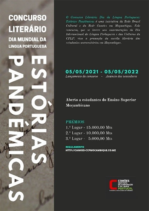Para mais informações: http://camoes-ccpmocambique.co.mz/eventos/concurso-literario-dia-mundial-da-lingua-portuguesa-estorias-pandemicas/