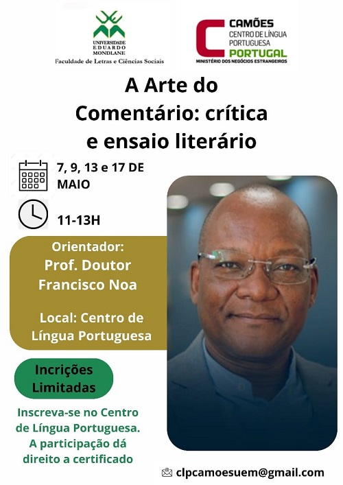 Terá lugar de 7 a 17 de maio de 2024, na Universidade Eduardo Mondlane, em Maputo, uma oficina intitulada "A arte do comentário: crítica e ensaio literário".