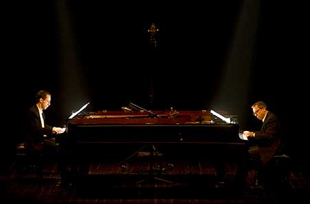 O repertório do concerto “Dois Pianos” inclui a Balada n.º 1 op. 23 de Chopin, numa abordagem clássica de Burmester e uma versão de Laginha incluída no CD “Mongrel”, Astor Piazzola, Debussy, Ravel e, inevitavelmente, composições de Bernardo Sassetti, em homenagem ao amigo e companheiro.