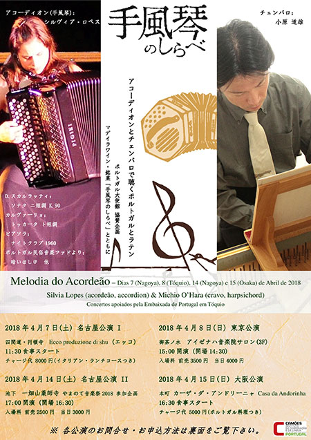 Michio O’hara, o intérprete de cravo que tem atuado no Japão, em Portugal e na Alemanha com reconhecido êxito, irá convidar a acordeonista portuguesa, Sílvia Lopes, para uma digressão em 4 cidades japonesas com o apoio do Camões – Centro Cultural Português em Tóquio.