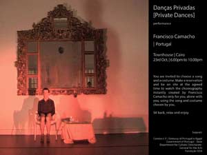 A nova dança portuguesa de Francisco Camacho vai fazer a sua estreia no Egito, numa apresentação do espetáculo “Danças Privadas”, que irá decorrer na Townhouse Gallery, no Cairo, no dia 23 de outubro. Paralelamente, Francisco Camacho levará a cabo um workshop intensivo de dança contemporânea no Cairo Contemporary Dance Center, espaço dirigido pela coreógrafa egípcia Karima Mansour. “Danças Privadas” foram apresentadas pela primeira vez no evento “Megastore”, em Lisboa. Neste espetáculo, cada cliente (espetador) faz uma marcação para uma determinada altura na qual o coreógrafo criará espontaneamente uma dança original. Apoios: Camões, I.P., Embaixada de Portugal no Cairo, Fundação GDA e Direção-Geral das Artes |