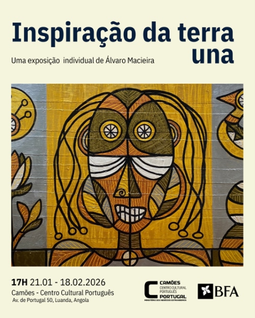 A exposição individual “Inspiração da Terra Una”, de Álvaro Macieira, com curadoria de Benjamim Sabby Alexandre, será inaugurada no dia 21 de janeiro de 2026, às 17h30, no Camões - Centro Cultural Português em Luanda, onde ficará patente ao público até 18 de fevereiro de 2026.