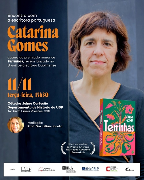 A escritora e jornalista portuguesa Catarina Gomes, convidada internacional da 71.ª Feira do Livro de Porto Alegre, participa no dia 11 de novembro de 2025, às 15h30, numa conversa na Cátedra Jaime Cortesão do Camões, I.P. na Universidade de São Paulo, por ocasião do lançamento no Brasil do romance "Terrinhas". A sessão será mediada por Lilian Jacoto.