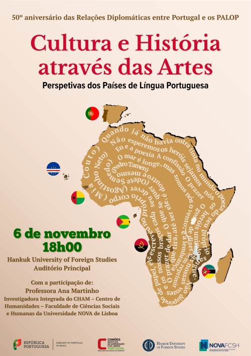 No âmbito das celebrações do 50.º aniversário das Relações Diplomáticas entre Portugal e os Países Africanos de Língua Oficial Portuguesa, decorrerá no dia 6 de novembro de 2025, às 18h00, na Universidade Hankuk de Estudos Estrangeiros, em Seul, a conferência “Cultura e História através das Artes - Perspetivas dos Países de Língua Portuguesa”, proferida por Ana Maria Martinho e organizada em parceria com o Camões - Instituto da Cooperação e da Língua, I.P.