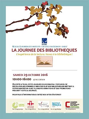 Dia de promoção das bibliotecas e de incentivo à leitura, durante o qual o CCP Rabat organizou uma série de atividades, como uma visita guiada à exposição “Camões”, leituras de Os Lusíadas e apresentação do filme “Camões” de Leitão de Barros. Organização: Centro Cultural Português em Rabat e EUNIC (Rede Europeia de Institutos Culturais Europeus) |