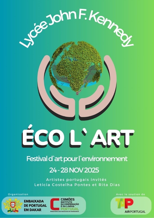 A Embaixada de Portugal em Dacar e o Camões, I.P., em parceria com o Liceu J.F. Kennedy de Dakar, organizam de 24 a 28 de novembro de 2025, a 4.ª edição do Festival Eco L’Art, uma iniciativa dedicada às questões da sustentabilidade ambiental, da criatividade artística e da promoção da língua e cultura portuguesas junto daquela comunidade escolar.