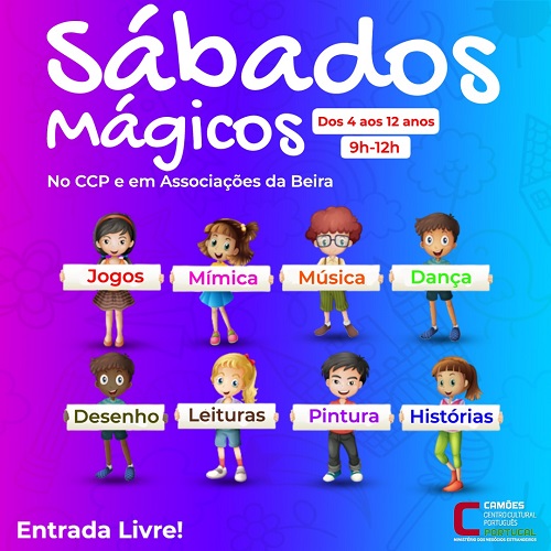 Os "Sábados Mágicos" pretendem reunir crianças, com idades compreendidas entre os 4 e os 12 anos, que vêm ao Camões – CCP em Maputo, Polo na Beira para brincar, jogar, criar, espalhar magia e, sobretudo, para que tenham a oportunidade de ter um espaço de encontro(s). Aos sábados, entre as 9h00 e as 12h00, terão lugar atividades divertidas, criativas e fomentadoras de um crescimento saudável com muitas aprendizagens cognitivas, sociais e (inter)culturais à mistura. O “Sábados Mágicos” acontecerá três vezes na Biblioteca deste CCP e uma vez numa associação ou no espaço de uma outra identidade. A participação é livre para as crianças entre os 4 e os 12 anos.