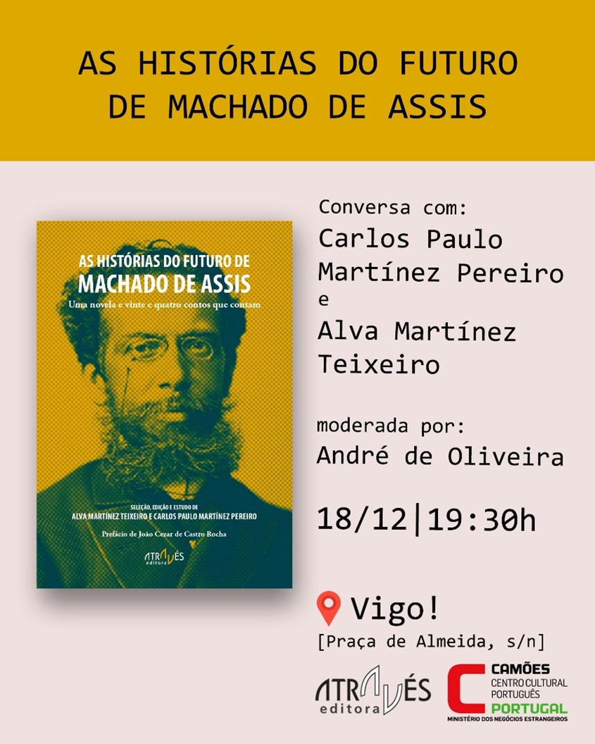 O Camões – Centro Cultural Português em Vigo acolhe, no dia 18 de dezembro de 2025, às 19h30, a apresentação do livro “As histórias do futuro de Machado de Assis”, organizada pela Através Editora.